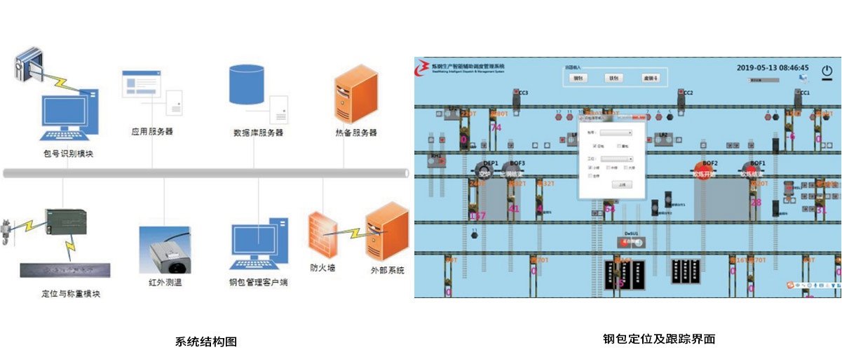 鋼包管理及智能調(diào)度系統(tǒng)根據(jù)爐次生產(chǎn)計(jì)劃和鋼包的實(shí)時(shí)狀態(tài),為每爐鋼水分配合適的鋼包,并記錄鋼水的運(yùn)輸狀態(tài)。鋼包管理及智能調(diào)度系統(tǒng)實(shí)現(xiàn)煉鋼生產(chǎn)環(huán)節(jié)的鋼包基本信息(重量、溫度、成分、位置等)、狀態(tài)數(shù)據(jù)的采集與分析,指導(dǎo)鋼包分配與吊運(yùn),自動(dòng)跟蹤鋼包流轉(zhuǎn)路徑,并對鋼包狀態(tài)進(jìn)行實(shí)時(shí)監(jiān)控。